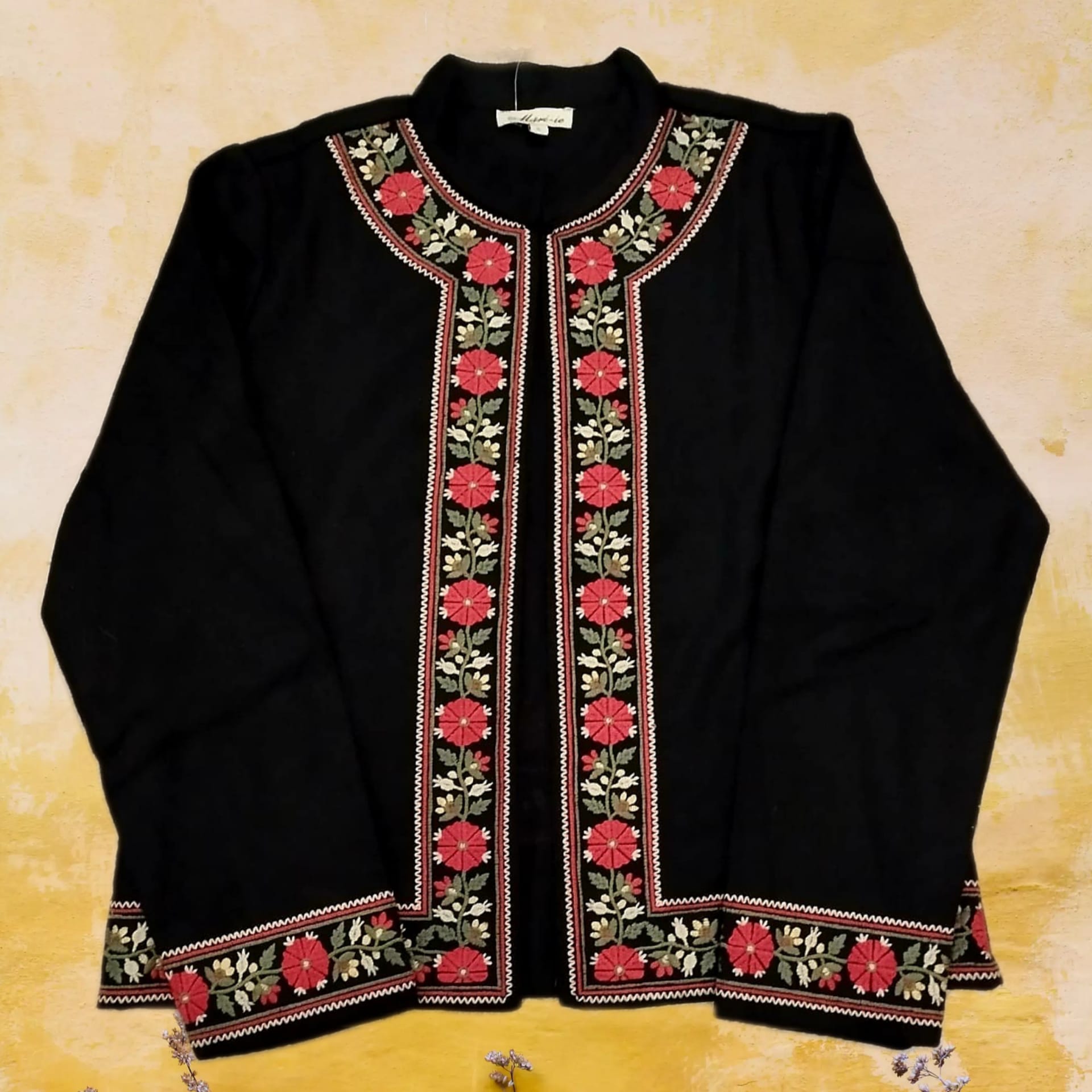 Sacou traditional brodat cu ata colorata, motiv floral. Pentru ca are materialul foarte bun [ stofa din lana] , da o nota de eleganta . Poate fi purtata cu ie traditionala , dar si accesorizata cu alte articole de imbracaminte. Sacoul are captuseala .