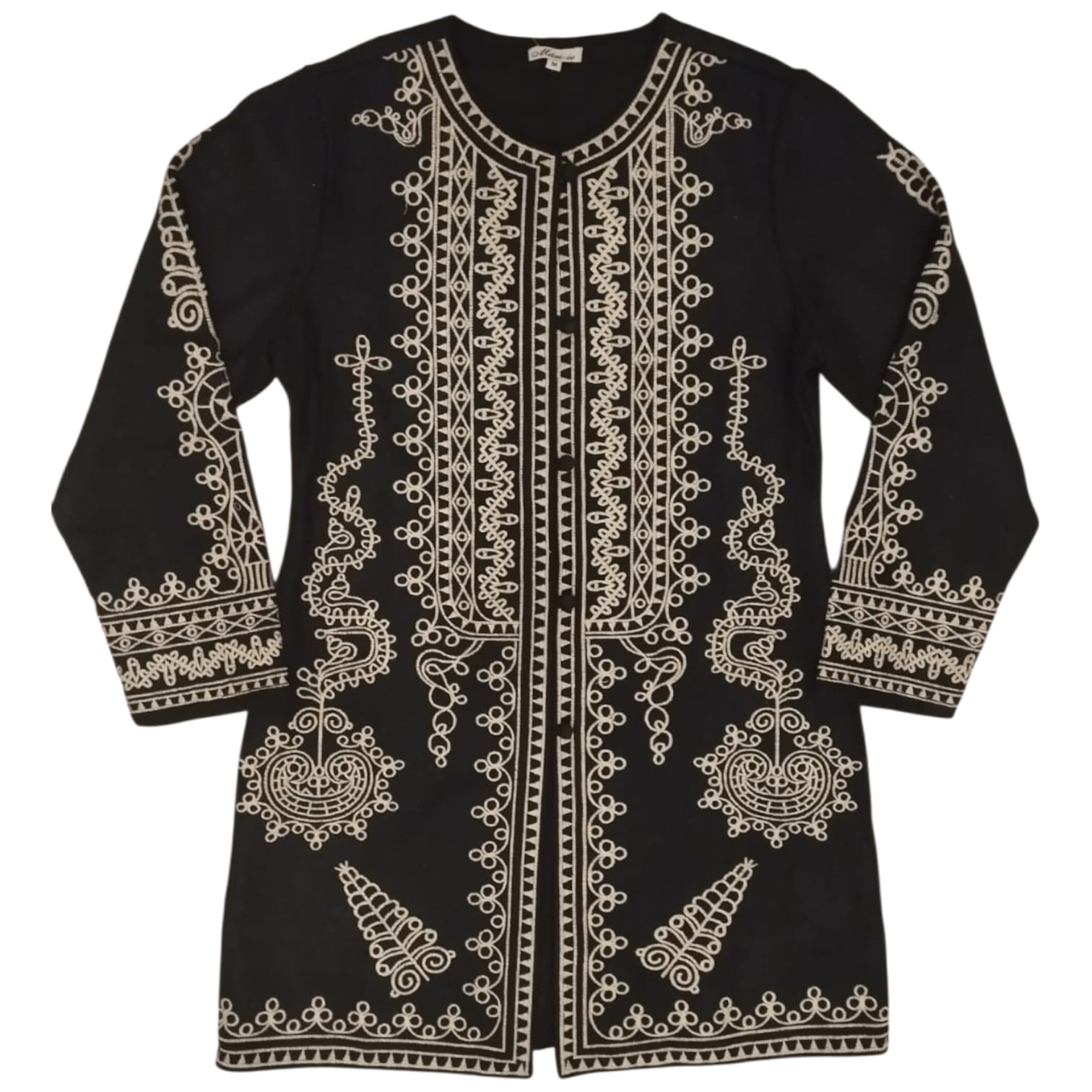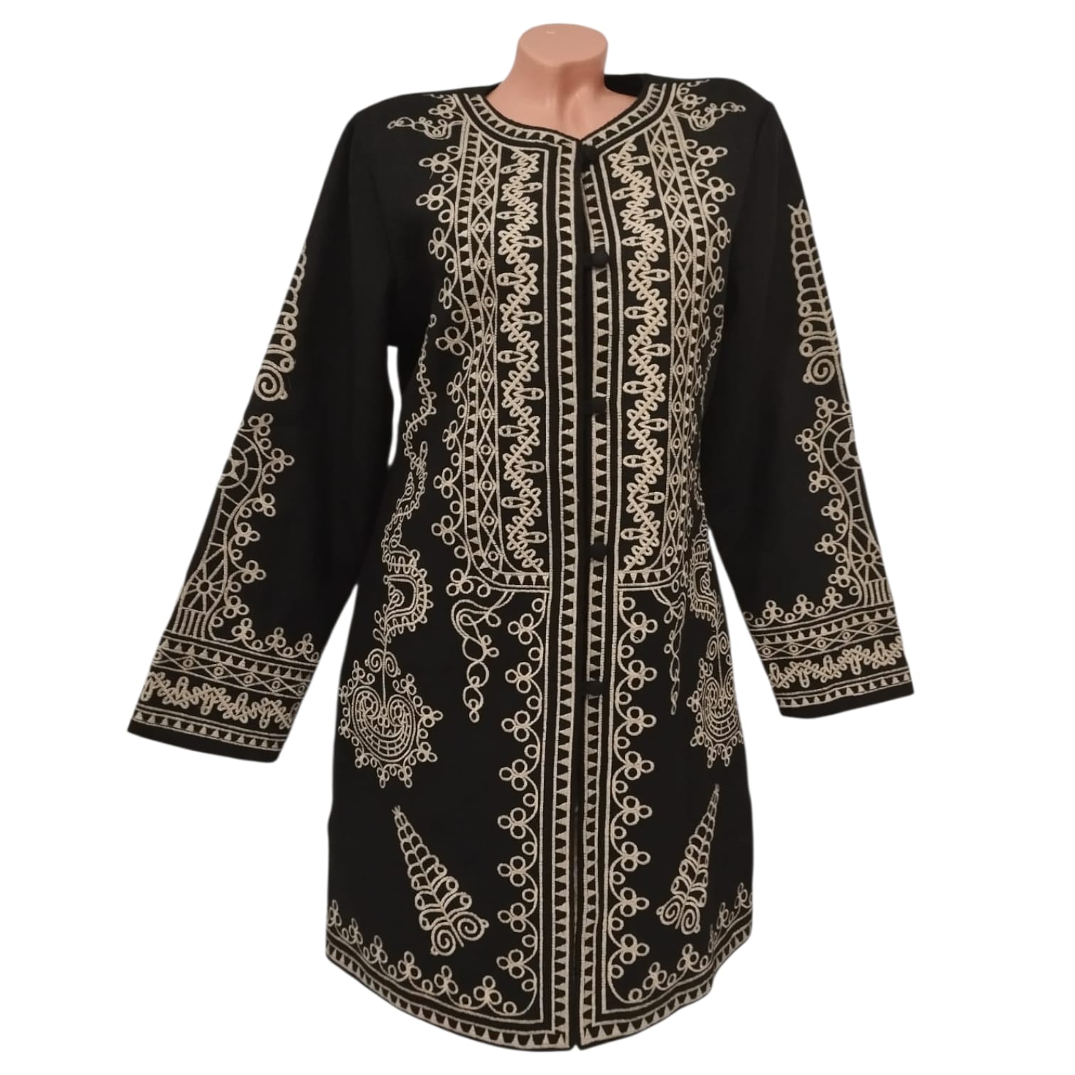 Suman traditional brodat cu ata bej, motiv geometric. Pentru ca are materialul foarte bun [ stofa din lana] , da o nota de eleganta . Poate fi purtata cu ie traditionala , dar si accesorizata cu alte articole de imbracaminte. Sumanul are captuseala .