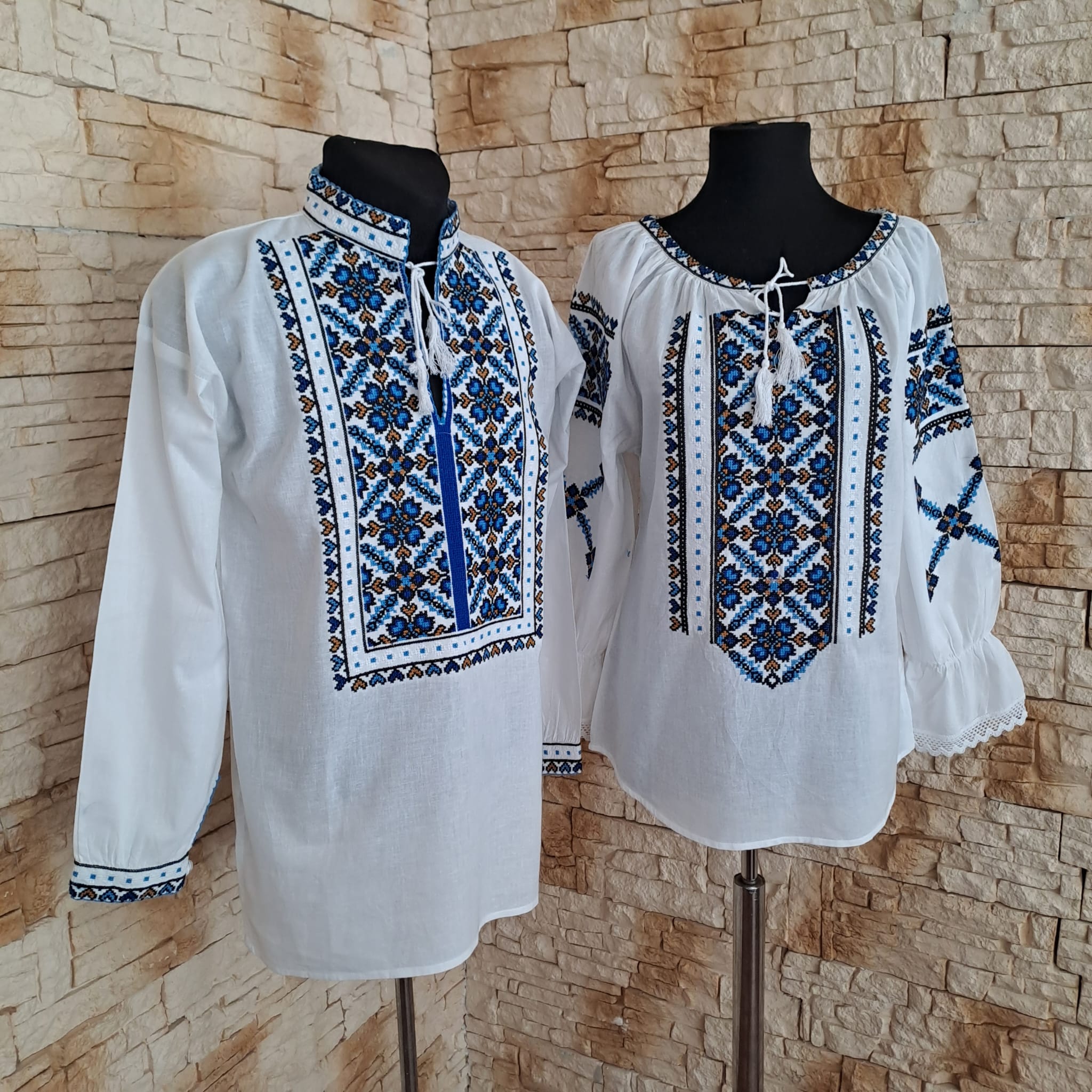 Set traditional familie, model deosebit , brodat cu ata colorata. Model cu motiv geometric, ce are culori bine conturate. Acest set se poarta cu mandrie mai ales in diferite zone ale tarii , la diferite evenimente cu specific traditional.