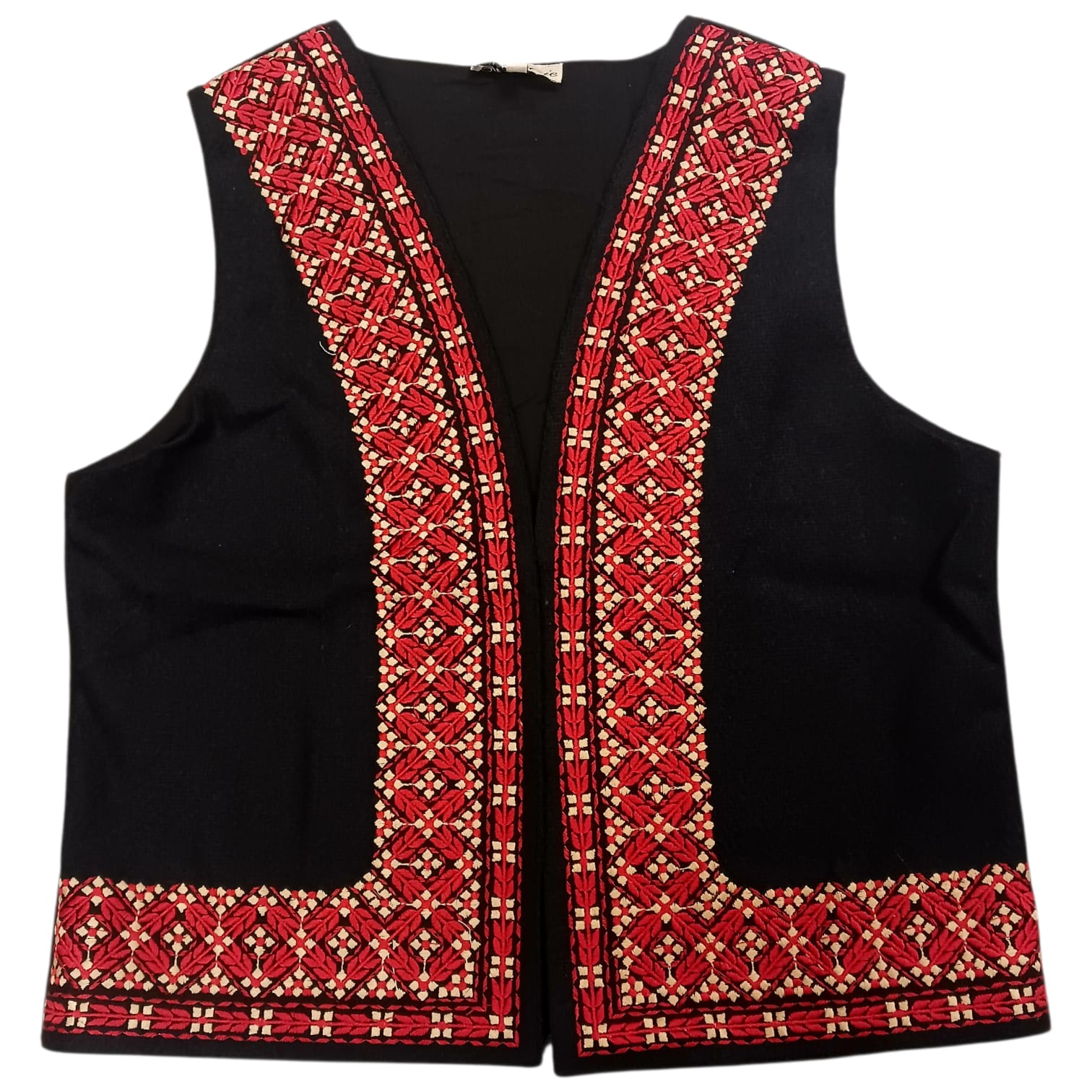 Vesta traditionala brodata cu ata rosie, motiv geometric. Pentru ca are materialul foarte bun [ stofa din lana] , da o nota de eleganta . Poate fi purtata cu ie traditionala , dar si accesorizata cu alte articole de imbracaminte. Vesta are captuseala .
