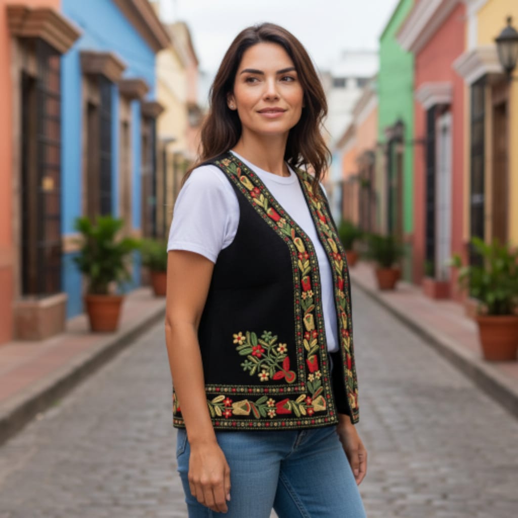 Vesta traditionala brodata cu ata colorata, motiv geometric si floral. Pentru ca are materialul foarte bun [ stofa din lana] , da o nota de eleganta . Poate fi purtata cu ie traditionala , dar si accesorizata cu alte articole de imbracaminte. Vesta are captuseala .